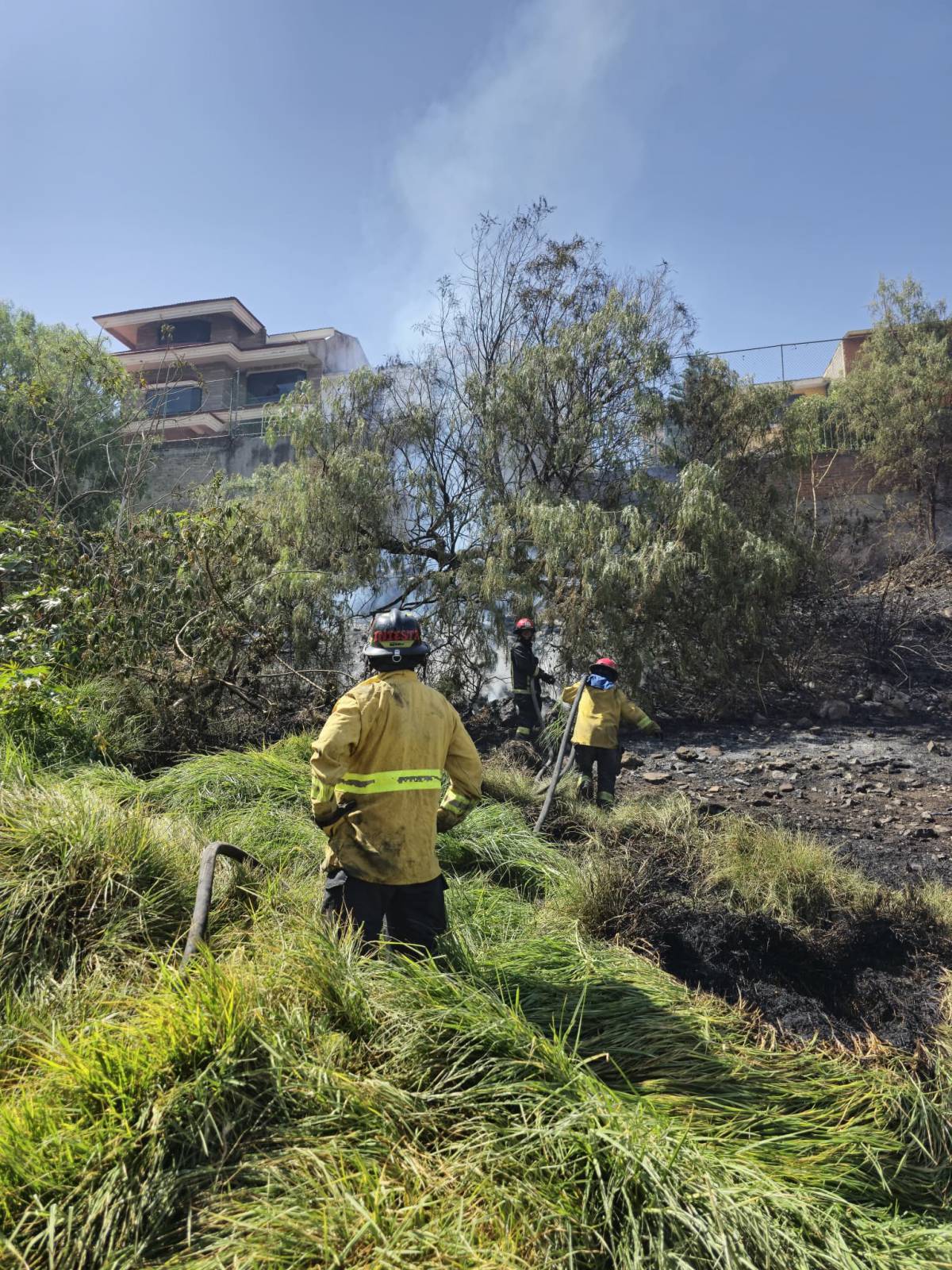 CONTROLAN BOMBEROS DE TLALNEPANTLA INCENDIO DE PASTIZAL EN LOMAS DE VALLE DORADO