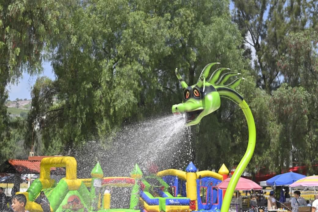 Niñas y niños se divirtieron a lo grande durante la inauguración de la rehabilitación del parque acuático en el Deportivo Caracoles, así como la puesta en funcionamiento de la ludoteca que cuenta con mesa de ping pong y juegos de mesa para toda la familia.