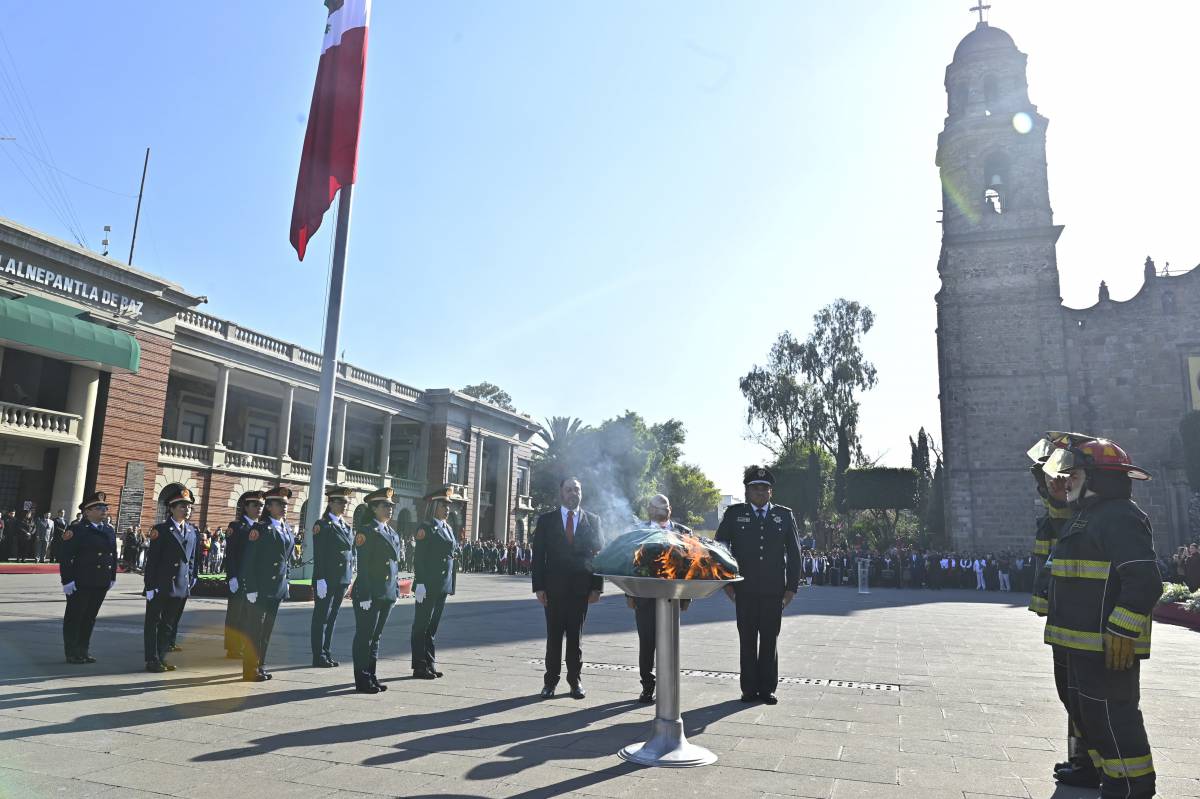 El presidente municipal de Tlalnepantla de Baz, Raciel Pérez Cruz, encabezó la conmemoración del Día de la Bandera, donde convocó a la unidad y defensa de la independencia nacional, así como el respeto que merece un pueblo libre y democrático, como es México.