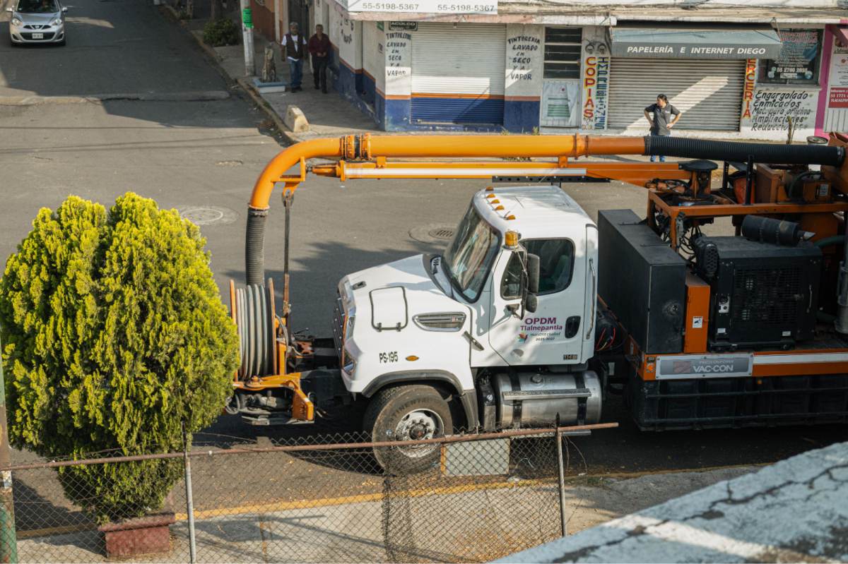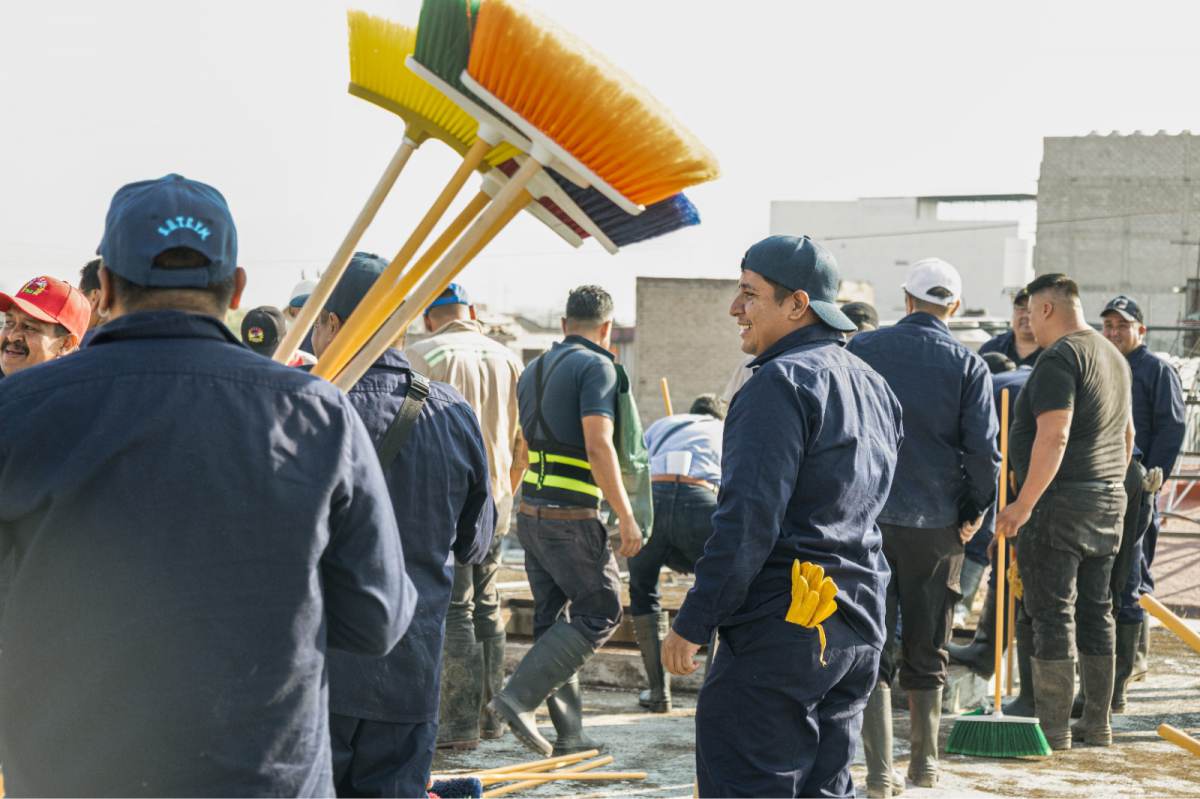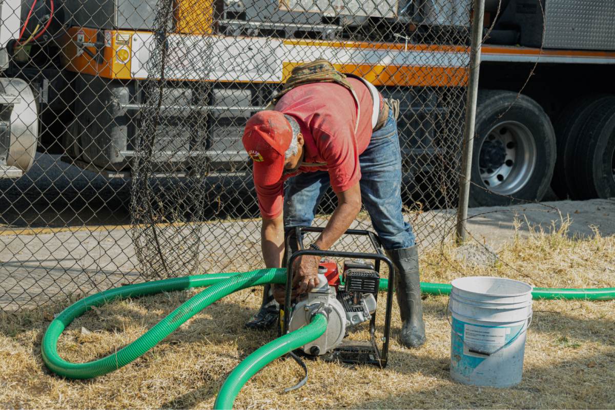 Los trabajos consistieron en una primera etapa de barrido y cepillado manual, en la que se extrajo tierra y lodo del interior del tanque utilizando escobas, palas y cubetas para su retiro. Posteriormente, con el apoyo de pipas de agua potable y camiones de presión-succión, se procedió a lavar y desinfectar las paredes internas.