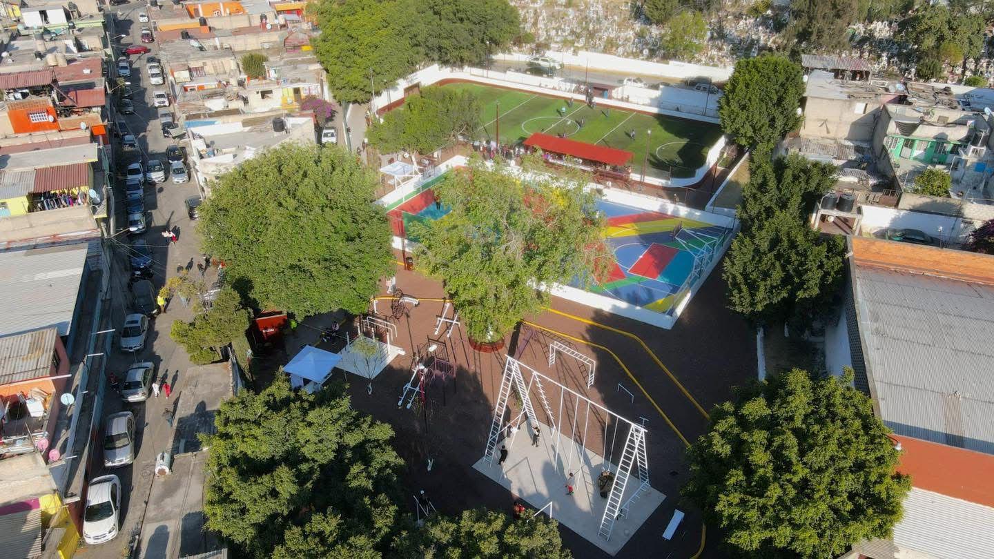 Los trabajos realizados incluyeron pintura general de las instalaciones, mejoramiento de la trotapista, aplicación de pintura a la cancha de usos múltiples y la colocación de pasto sintético, acciones que permitirán ofrecer espacios dignos, seguros y funcionales para la práctica deportiva y recreativa.
